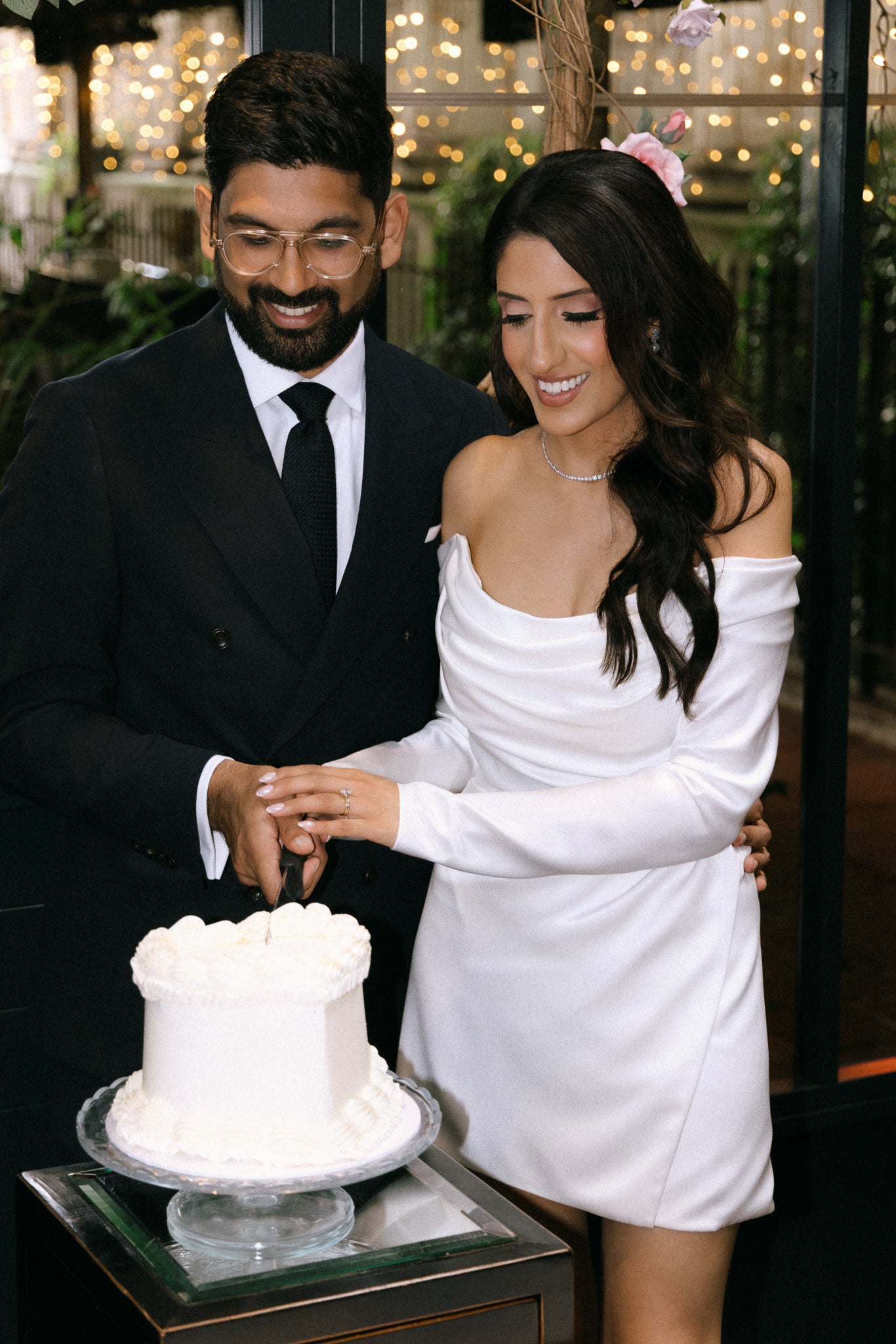 I had probably been to about four or five London bridal stores, and I saw Love Story pop-up on my Instagram and saw that they were opening a London bridal studio. The earliest appointment I could get was for March and I already knew time was tight, but I knew that I had to wait to go there before I place an order with anyone else. I just got back from my Indian bridal shopping and then that weekend had my appointment with Amelia (who was the sweetest) and among all the designer wedding dresses, I knew Saint was the wedding dress for me. I absolutely loved the modern leg slit and the crepe material. I made an appointment to come back three days later with my Mum this time for the final stamp of approval, and that’s also where Amelia show me Jett Mini which was definitely love at first sight. The mini wedding dress featured long slipper satin sleeves which I loved. Later that evening, I messaged Amelia and placed an order for both wedding dresses.