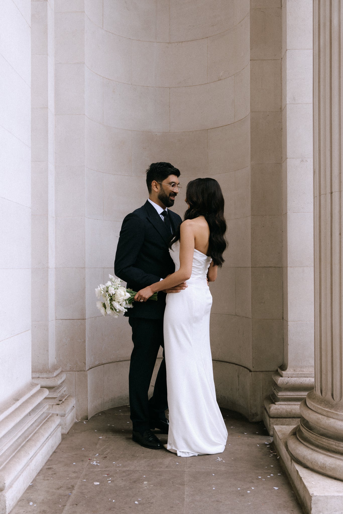Two modern bridal looks, one beautiful real bride - inside a stylish London wedding at Marylebone Old Town Hall.